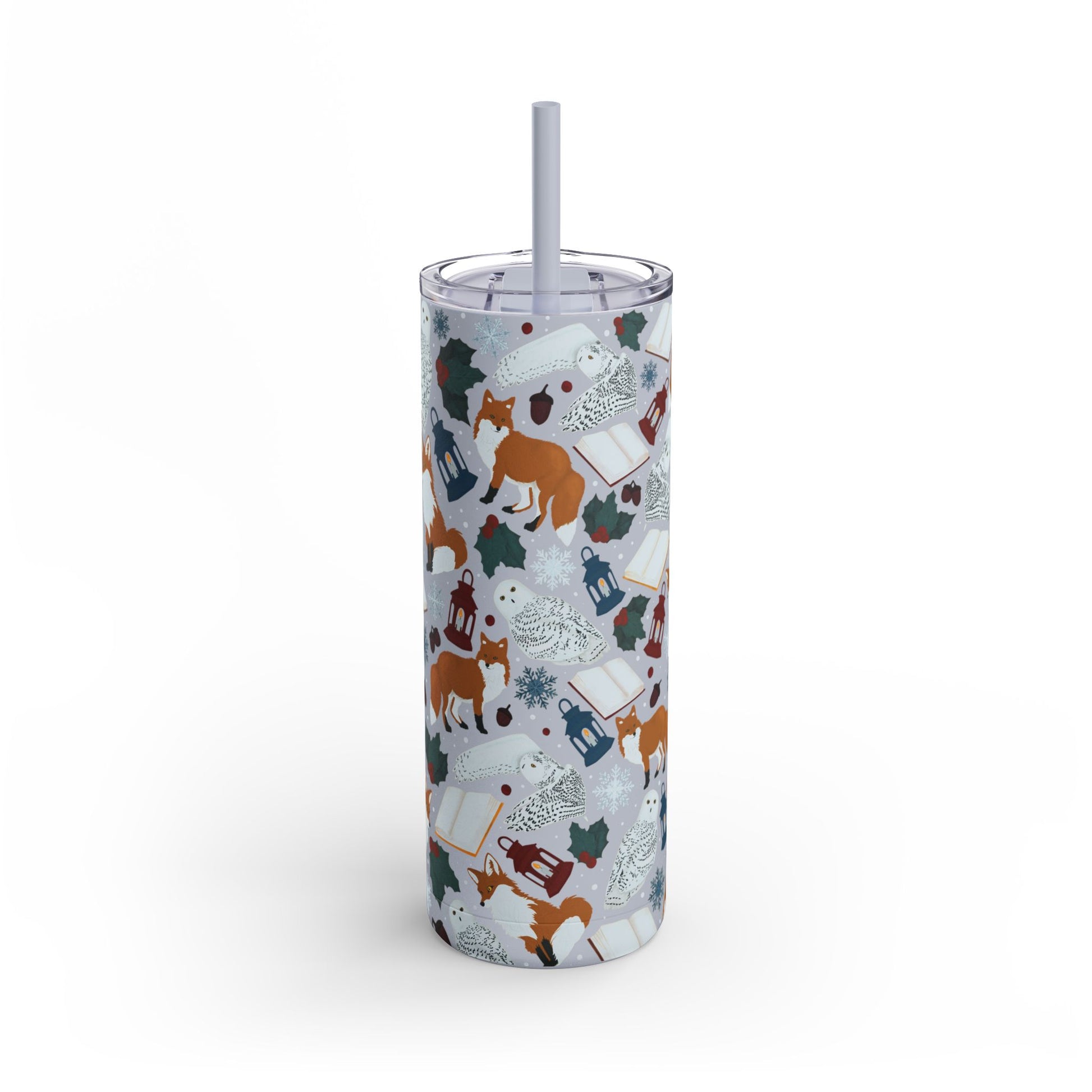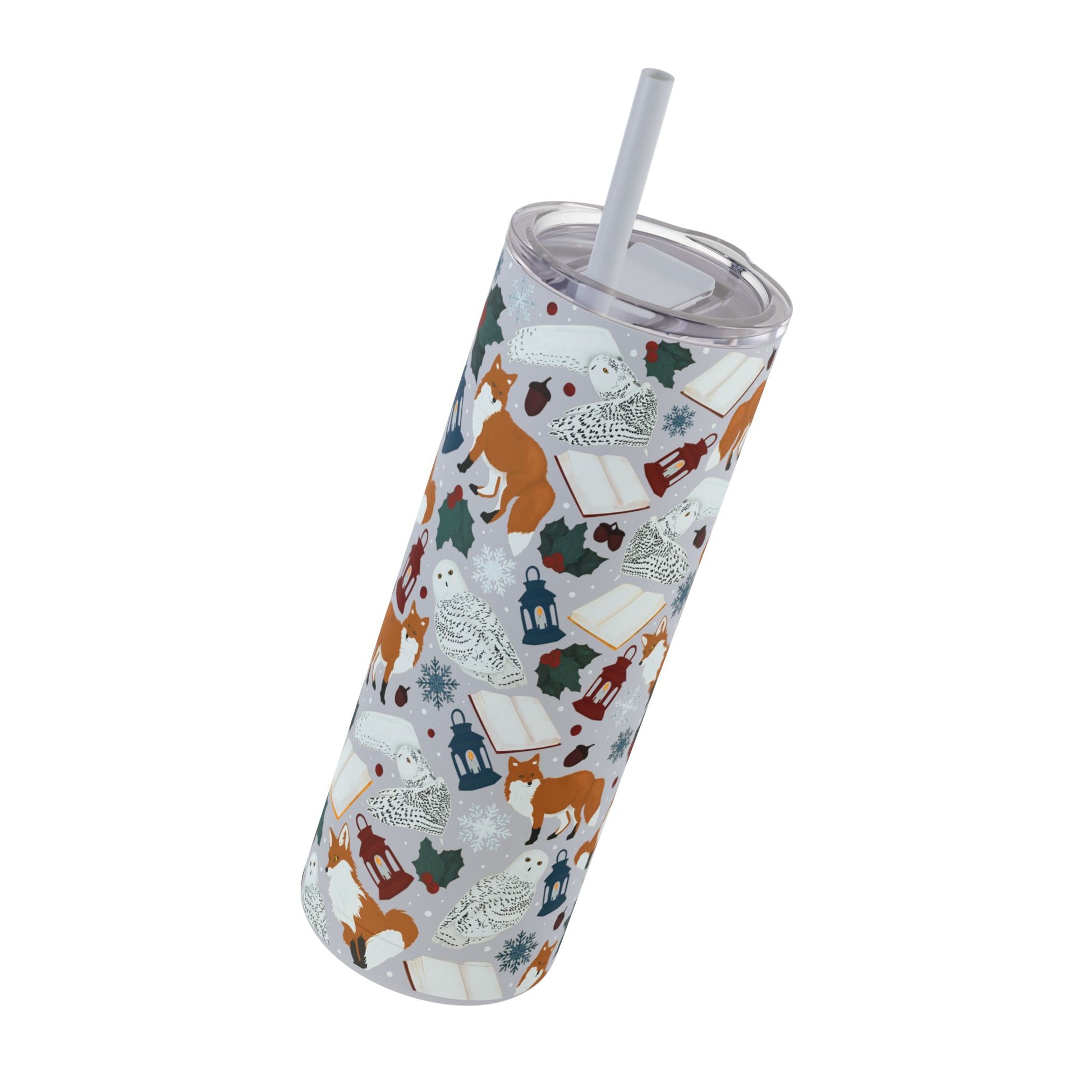 Inspired by the hush of falling snow and the quiet comfort of winter reads, our Winter Wonderland tumbler captures the magic of the season in full storybook form. With soft hues of fox-red, owl-white, and lantern-light against a dusty blue base, it’s a gentle nod to the warmth found in cold places—and the chapters best read by candle glow.